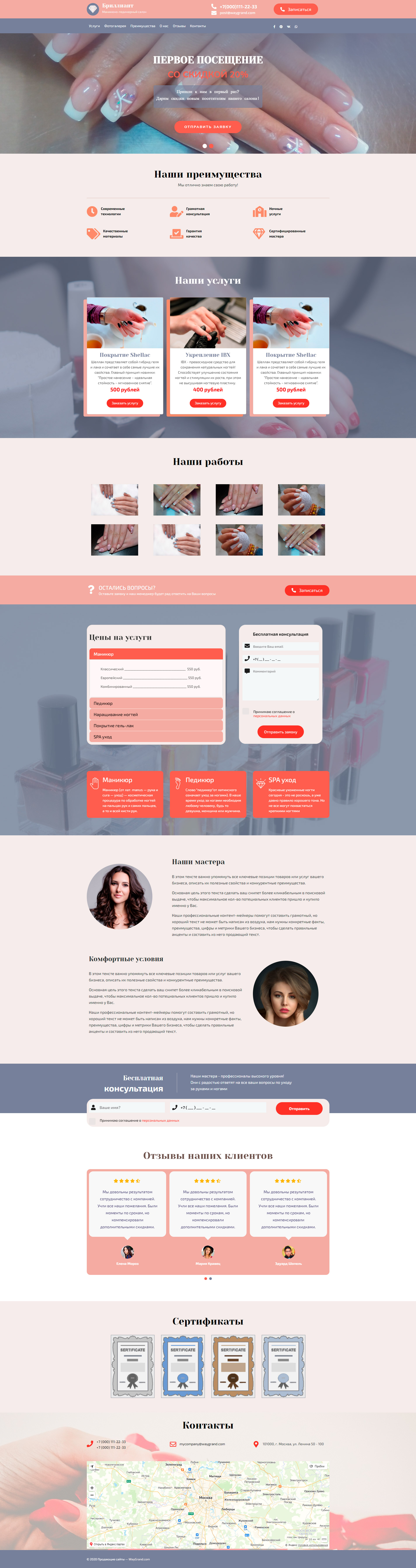 Закажите готовый продающий сайт лендинг #1107201 в Грозном за 1-3 дня «под ключ»: свёрстан, отрисован и готов к рекламе. Тематика шаблона «Салон маникюра и педикюра».