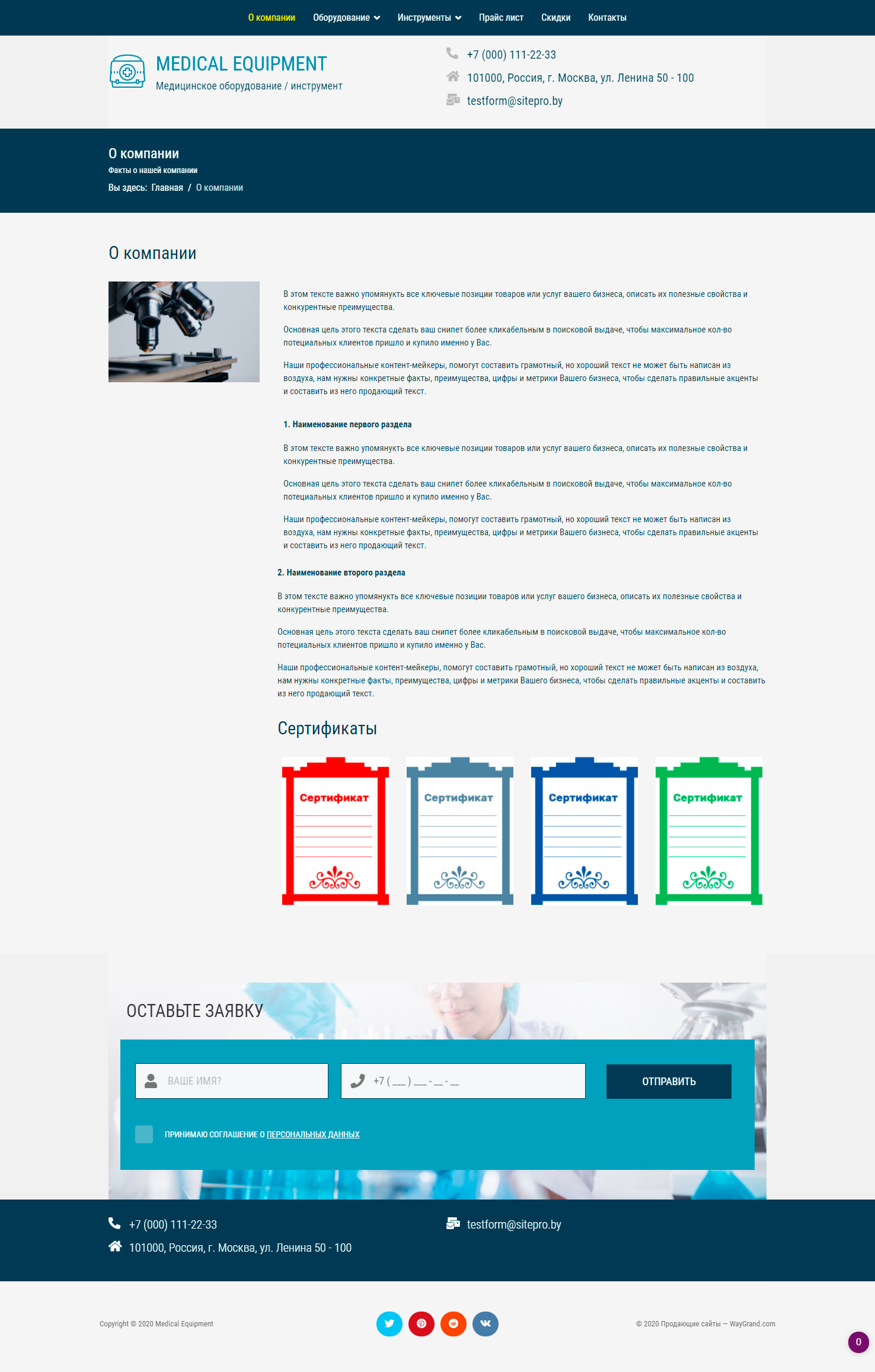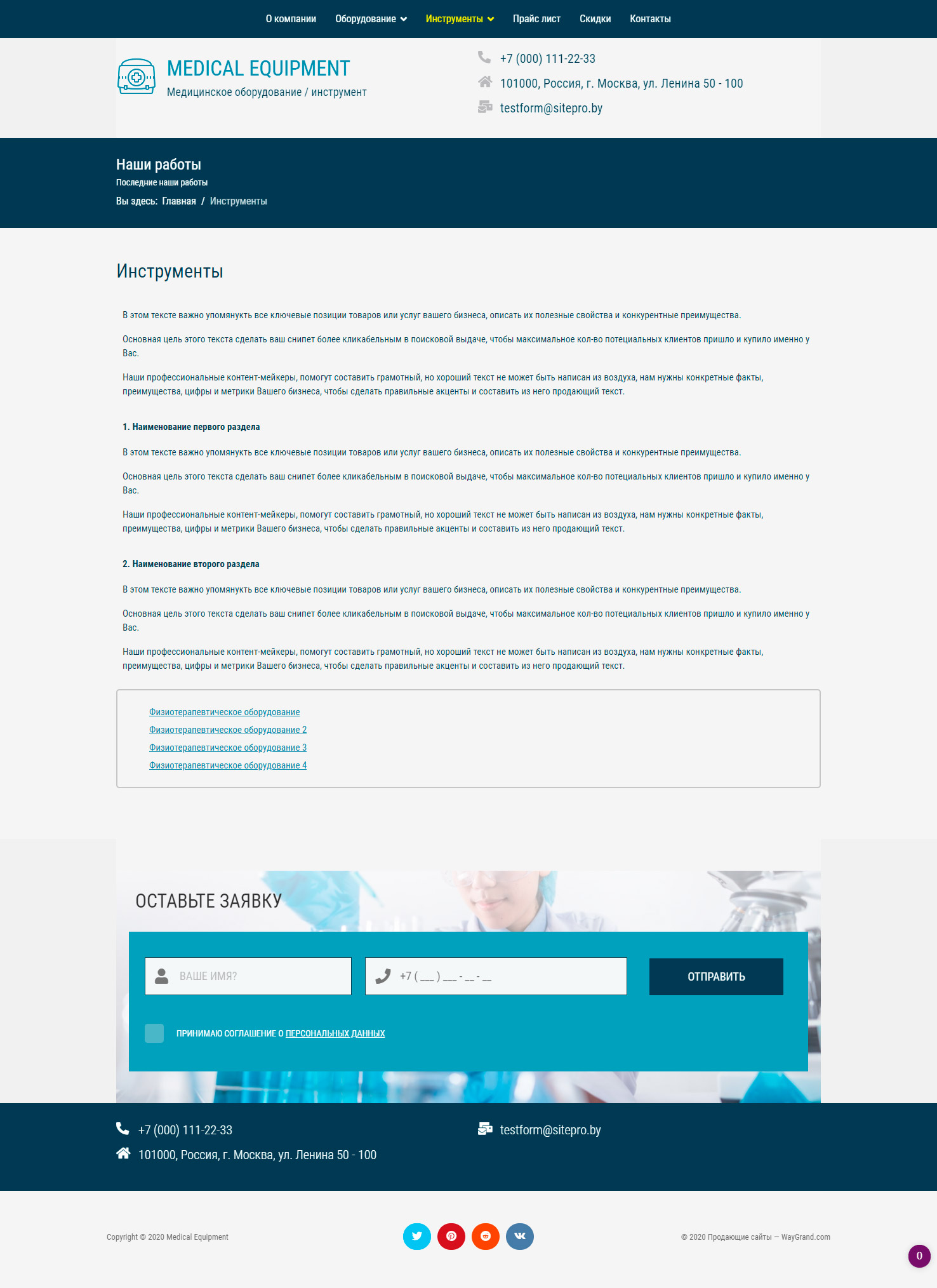 Закажите готовый продающий сайт визитка #1029301 в Грозном за 5-7 дня «под ключ»: свёрстан, отрисован и готов к рекламе. Тематика шаблона «Медицинское оборудование / инструмент».
