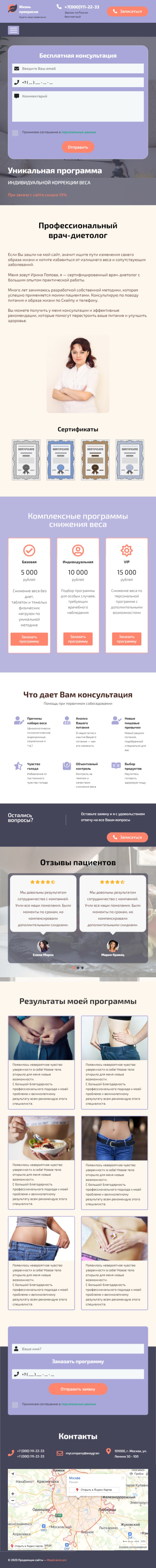 Закажите готовый продающий сайт лендинг #1094201 в Грозном за 1-3 дня «под ключ»: свёрстан, отрисован и готов к рекламе. Тематика шаблона «Врач-диетолог (похудение)».