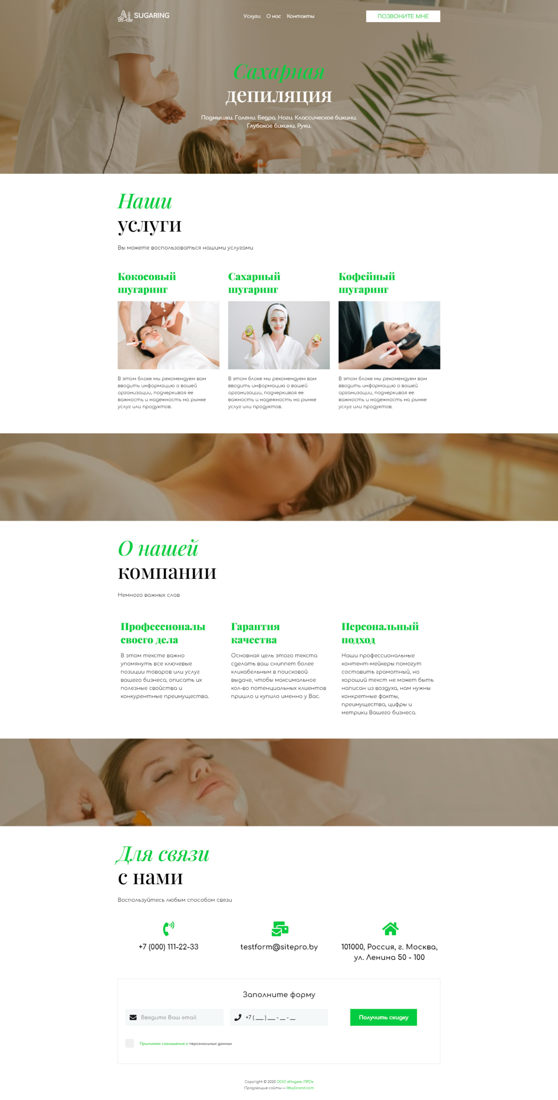 Закажите готовый продающий сайт визитка #1105101 в Грозном за 5-7 дня «под ключ»: свёрстан, отрисован и готов к рекламе. Тематика шаблона «Сахарная депиляция/Шугаринг».