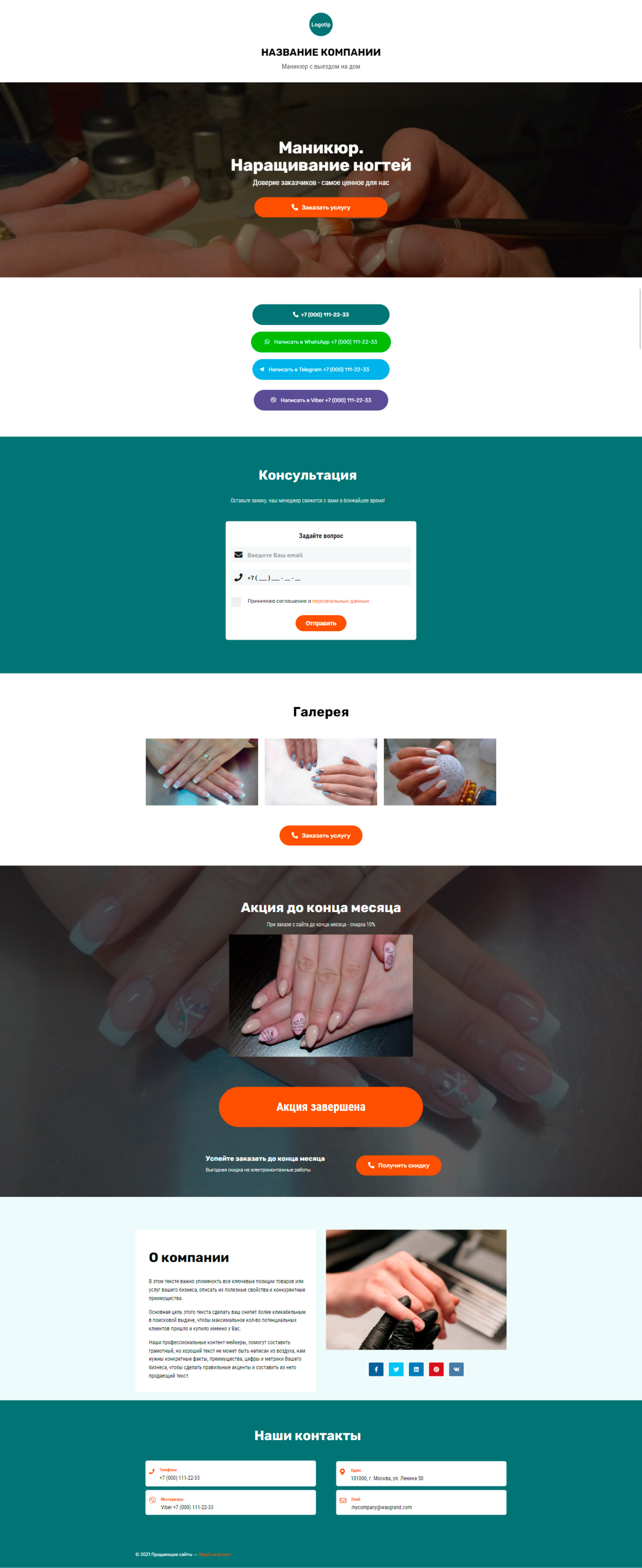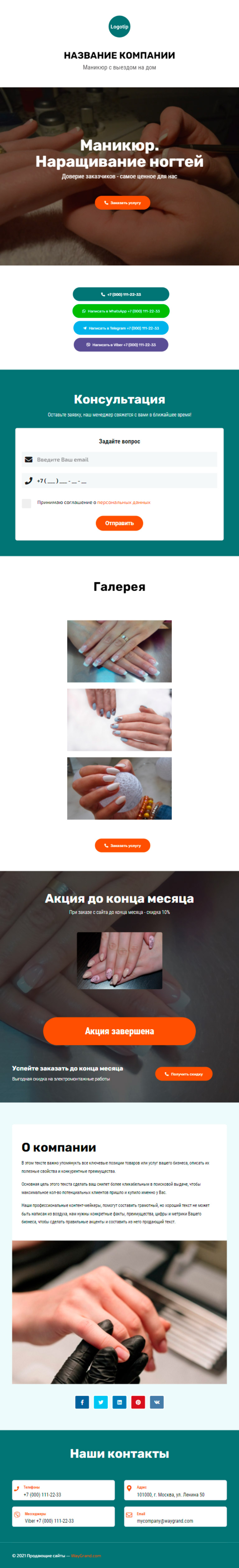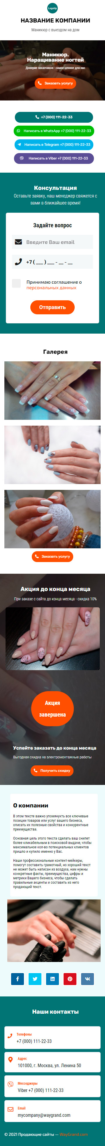 Закажите готовый продающий сайт визитка #1107101 в Грозном за 5-7 дня «под ключ»: свёрстан, отрисован и готов к рекламе. Тематика шаблона «Маникюр. Наращивание ногтей».