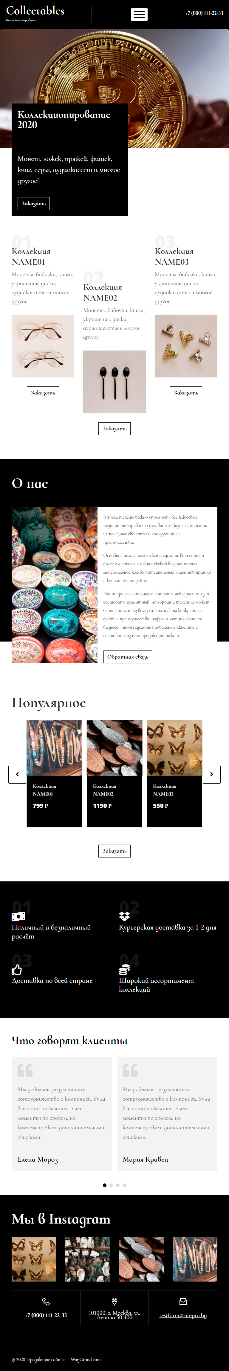 Закажите готовый продающий сайт лендинг #0801201 в Грозном за 1-3 дня «под ключ»: свёрстан, отрисован и готов к рекламе. Тематика шаблона «Коллекционирование».