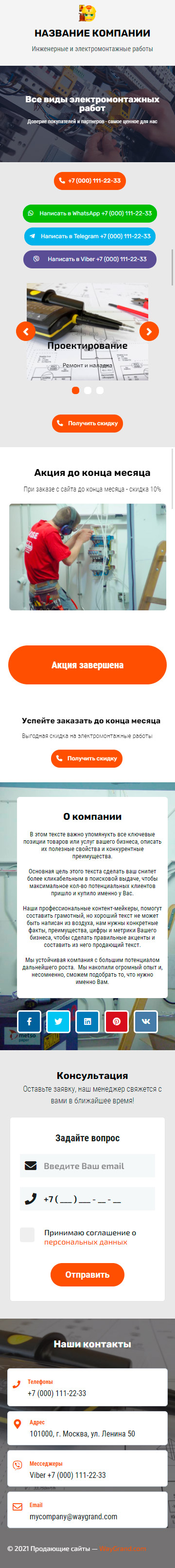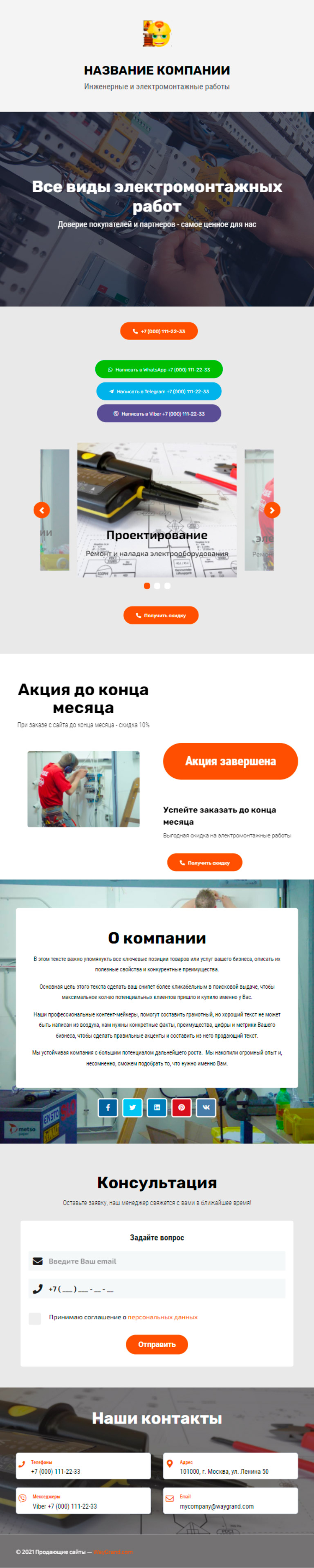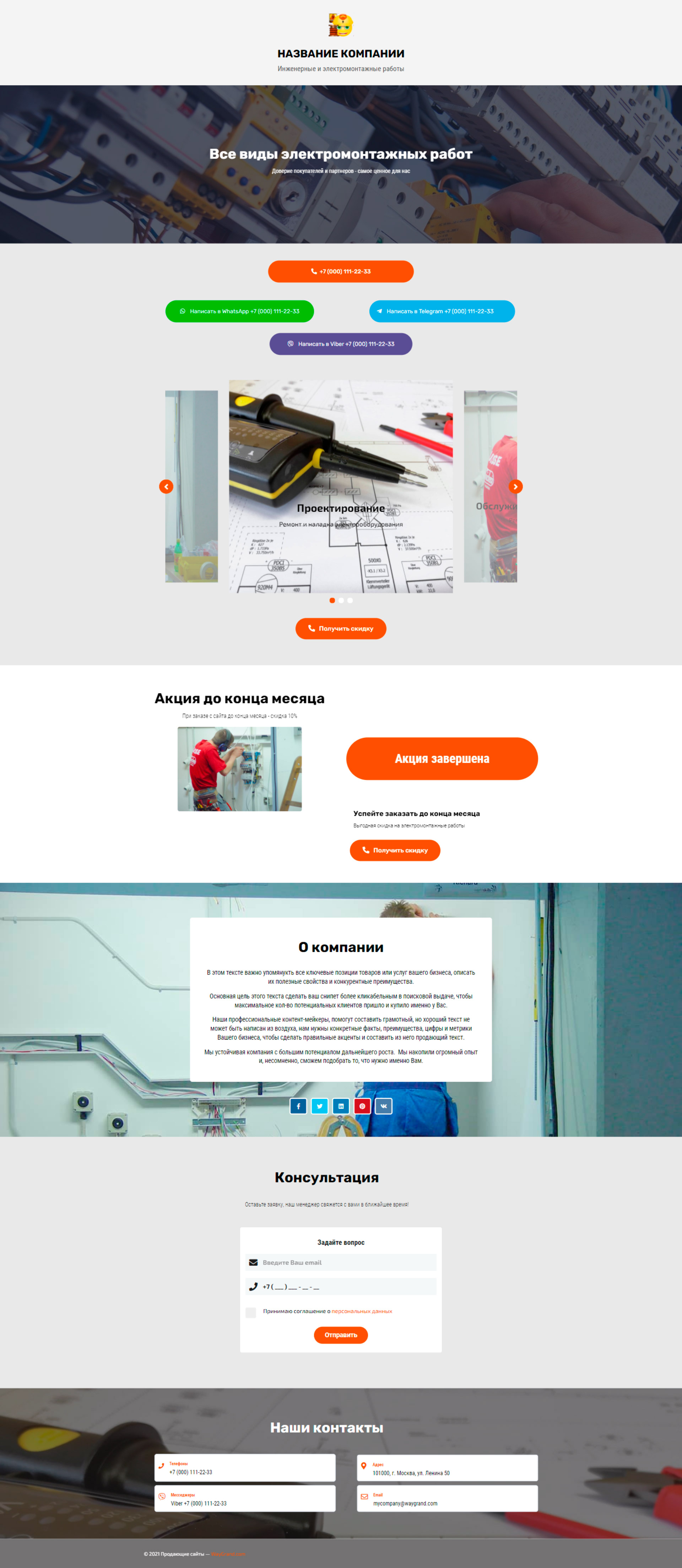 Закажите готовый продающий сайт визитка #2189101 в Грозном за 5-7 дня «под ключ»: свёрстан, отрисован и готов к рекламе. Тематика шаблона «Инженерные и электромонтажные работы».