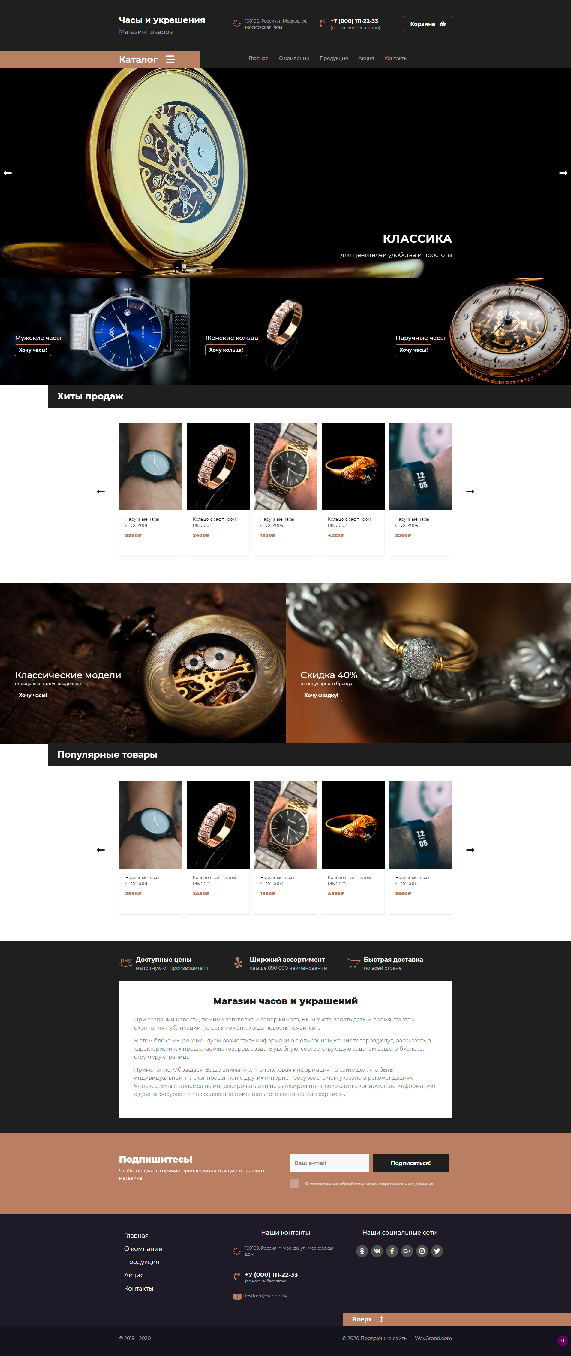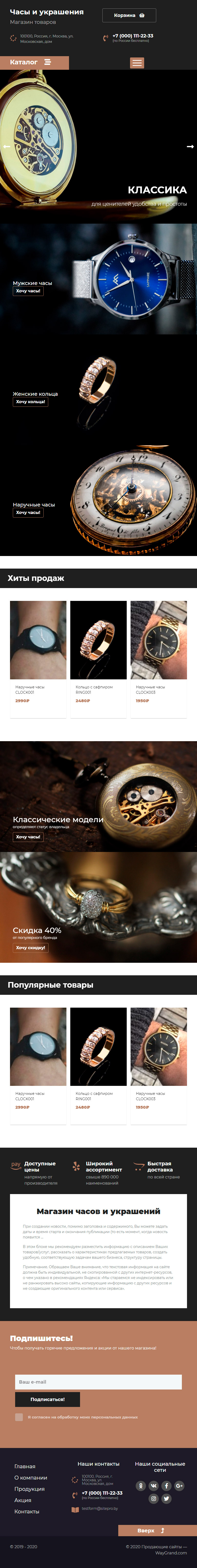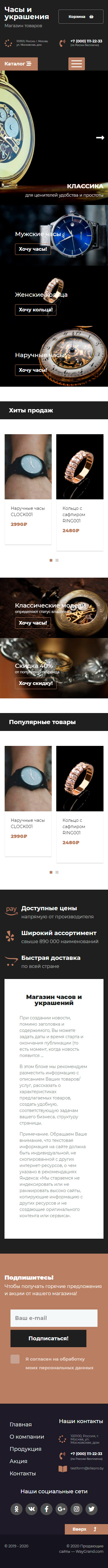 Закажите готовый продающий сайт лендинг #2437201 в Грозном за 1-3 дня «под ключ»: свёрстан, отрисован и готов к рекламе. Тематика шаблона «Часы и украшения».