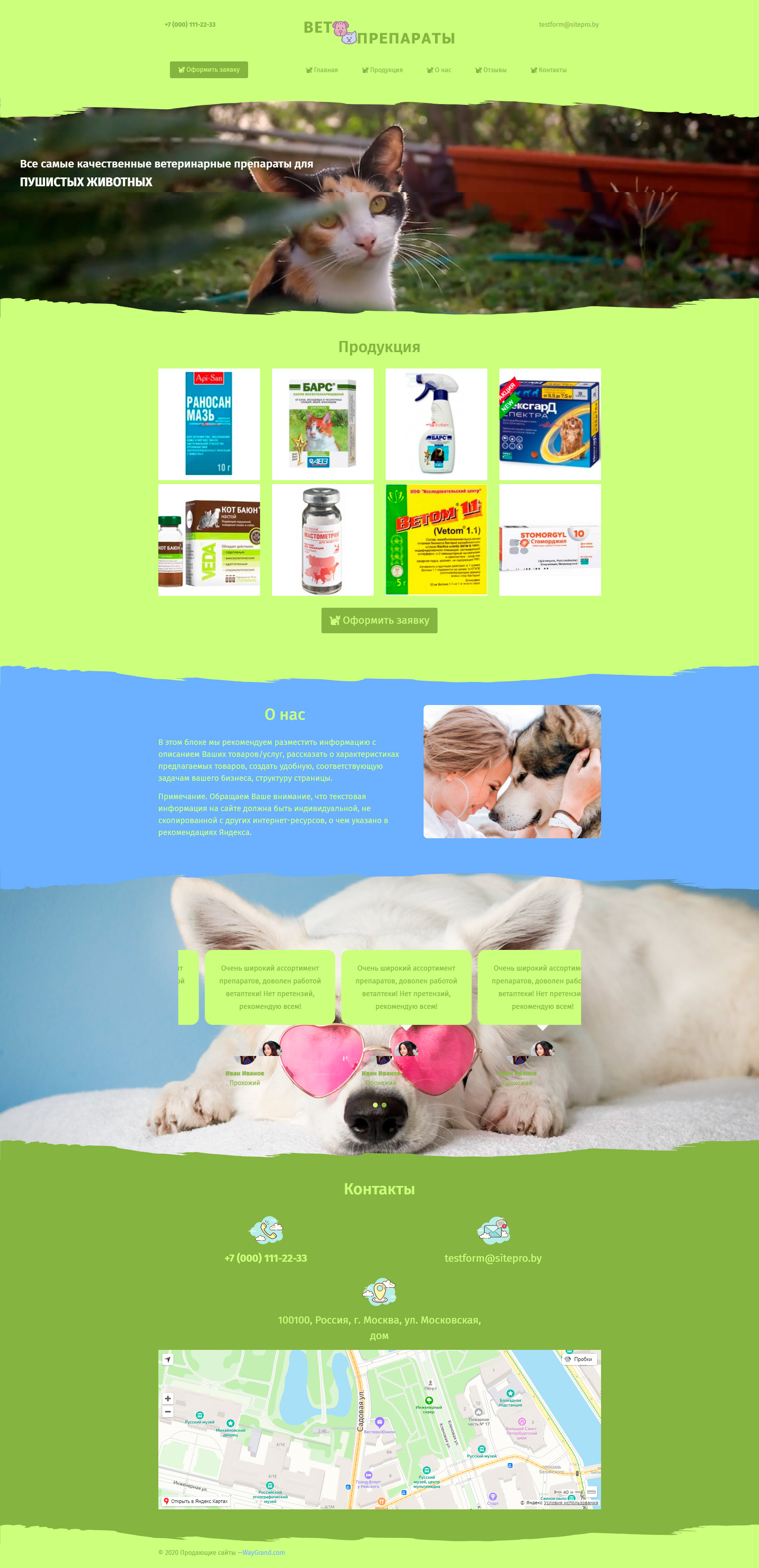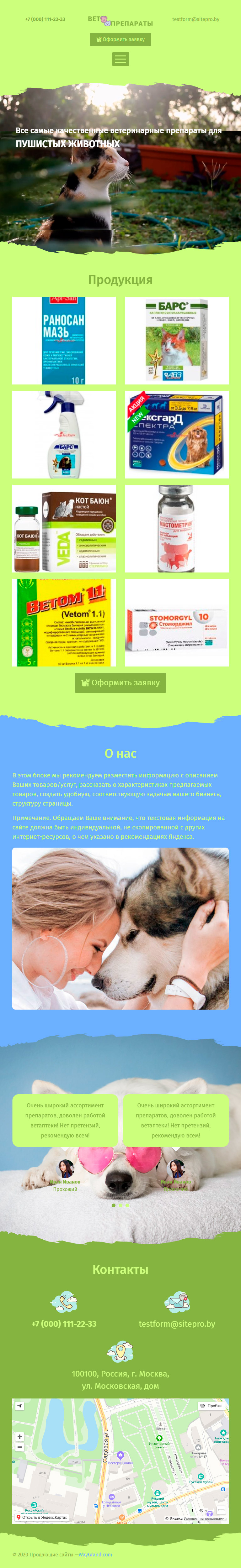 Закажите готовый продающий сайт лендинг #2305202 в Грозном за 1-3 дня «под ключ»: свёрстан, отрисован и готов к рекламе. Тематика шаблона «Ветпрепараты».