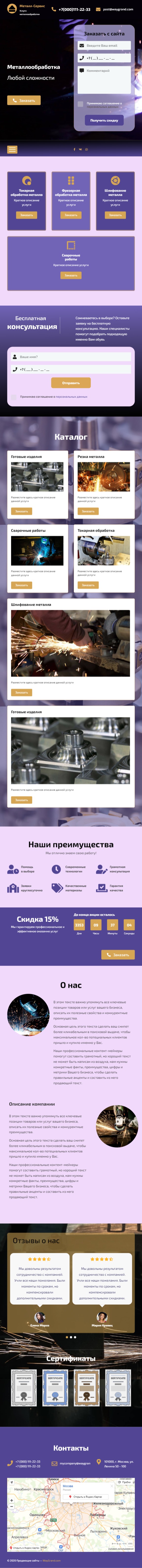 Закажите готовый продающий сайт лендинг #1209202 в Грозном за 1-3 дня «под ключ»: свёрстан, отрисован и готов к рекламе. Тематика шаблона «Металлообработка».