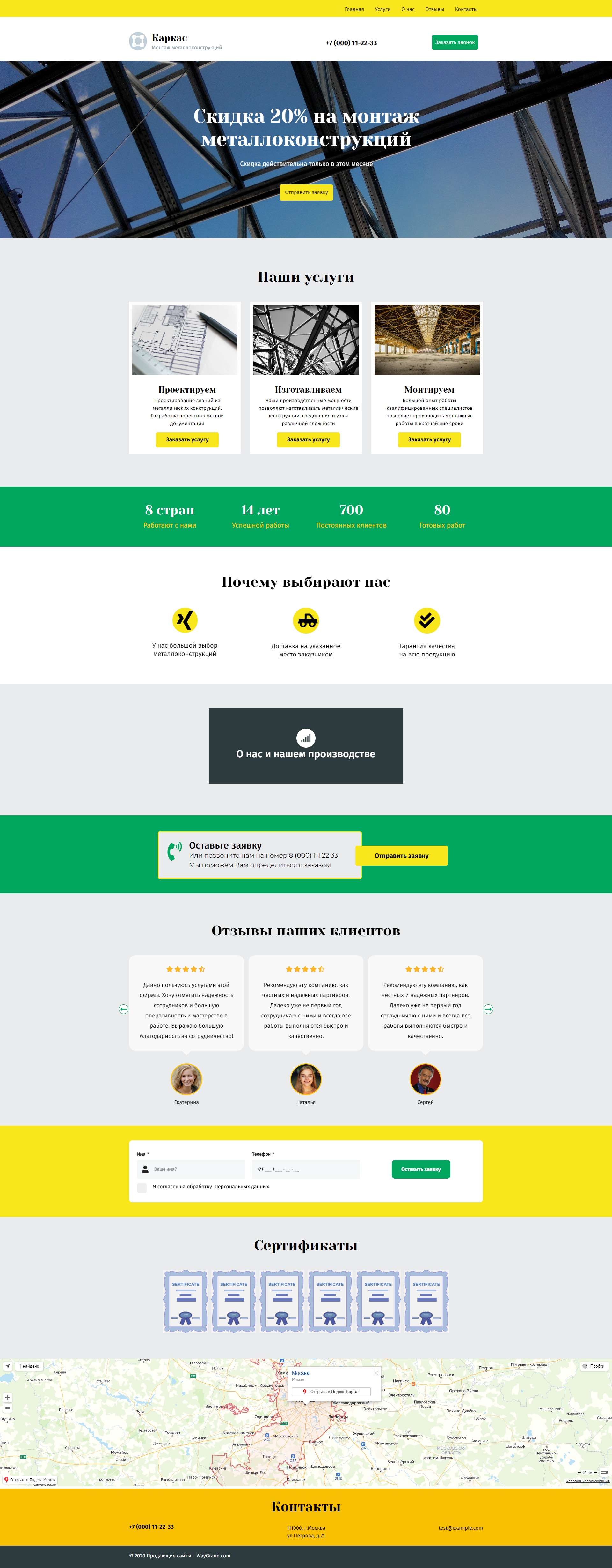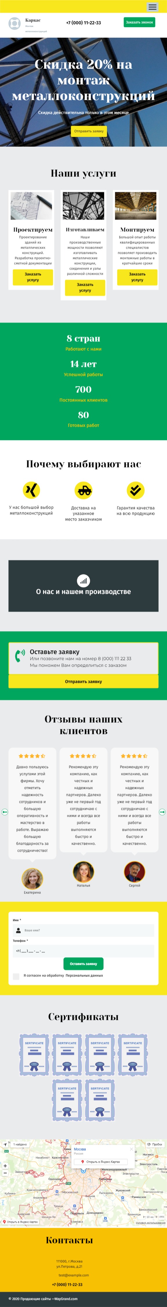 Закажите готовый продающий сайт лендинг #2027201 в Грозном за 1-3 дня «под ключ»: свёрстан, отрисован и готов к рекламе. Тематика шаблона «Металлоконструкции».