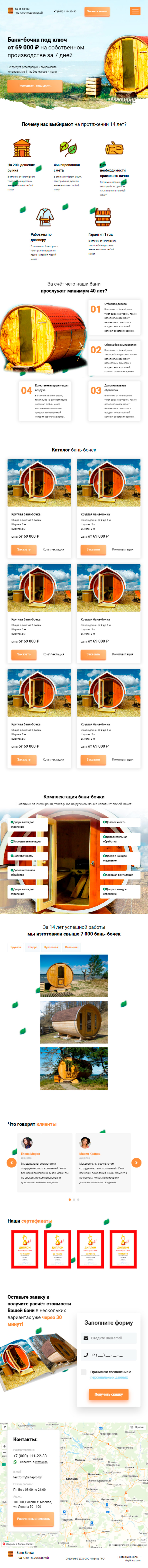 Закажите готовый продающий сайт лендинг #2172204 в Грозном за 1-3 дня «под ключ»: свёрстан, отрисован и готов к рекламе. Тематика шаблона «Баня-бочки».