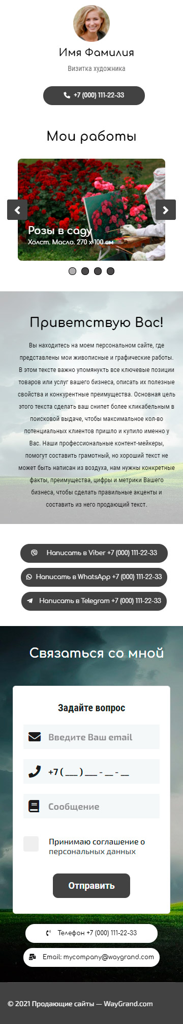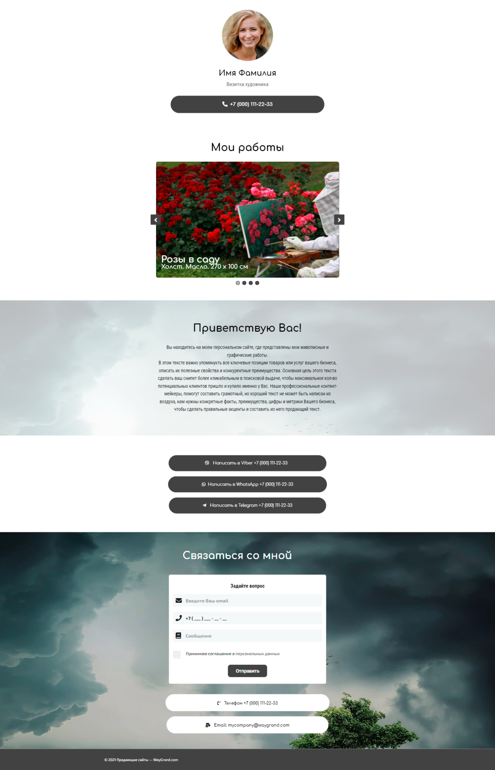 Закажите готовый продающий сайт визитка #0826101 в Грозном за 5-7 дня «под ключ»: свёрстан, отрисован и готов к рекламе. Тематика шаблона «Визитка художника».