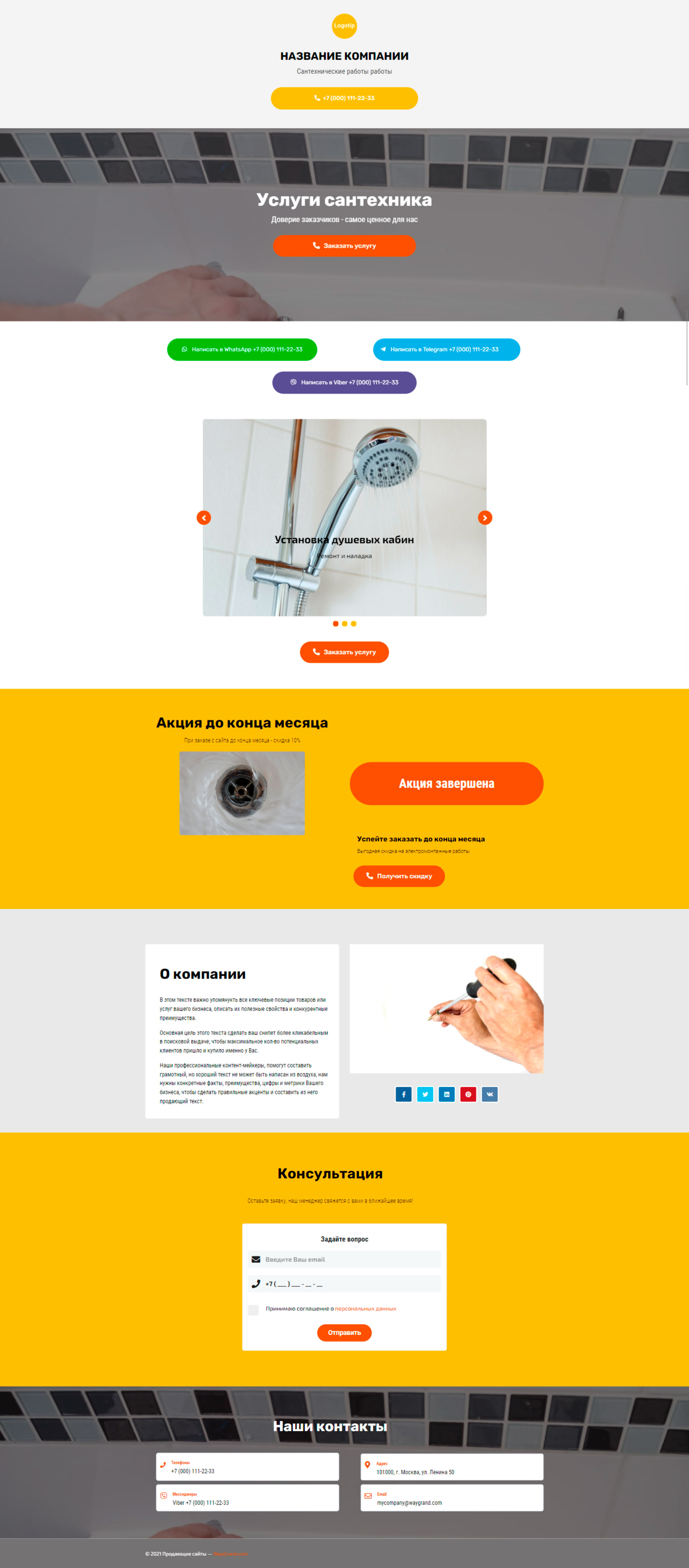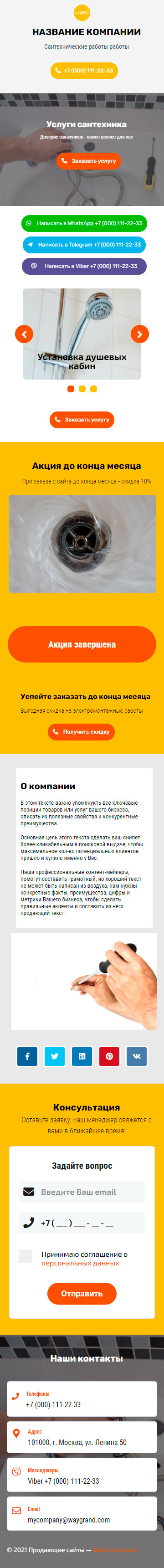 Закажите готовый продающий сайт визитка #2154101 в Грозном за 5-7 дня «под ключ»: свёрстан, отрисован и готов к рекламе. Тематика шаблона «Сантехнические работы».