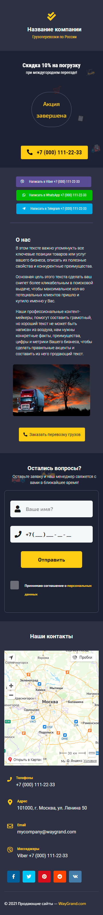 Закажите готовый продающий сайт визитка #2515101 в Грозном за 5-7 дня «под ключ»: свёрстан, отрисован и готов к рекламе. Тематика шаблона «Грузоперевозки по России».