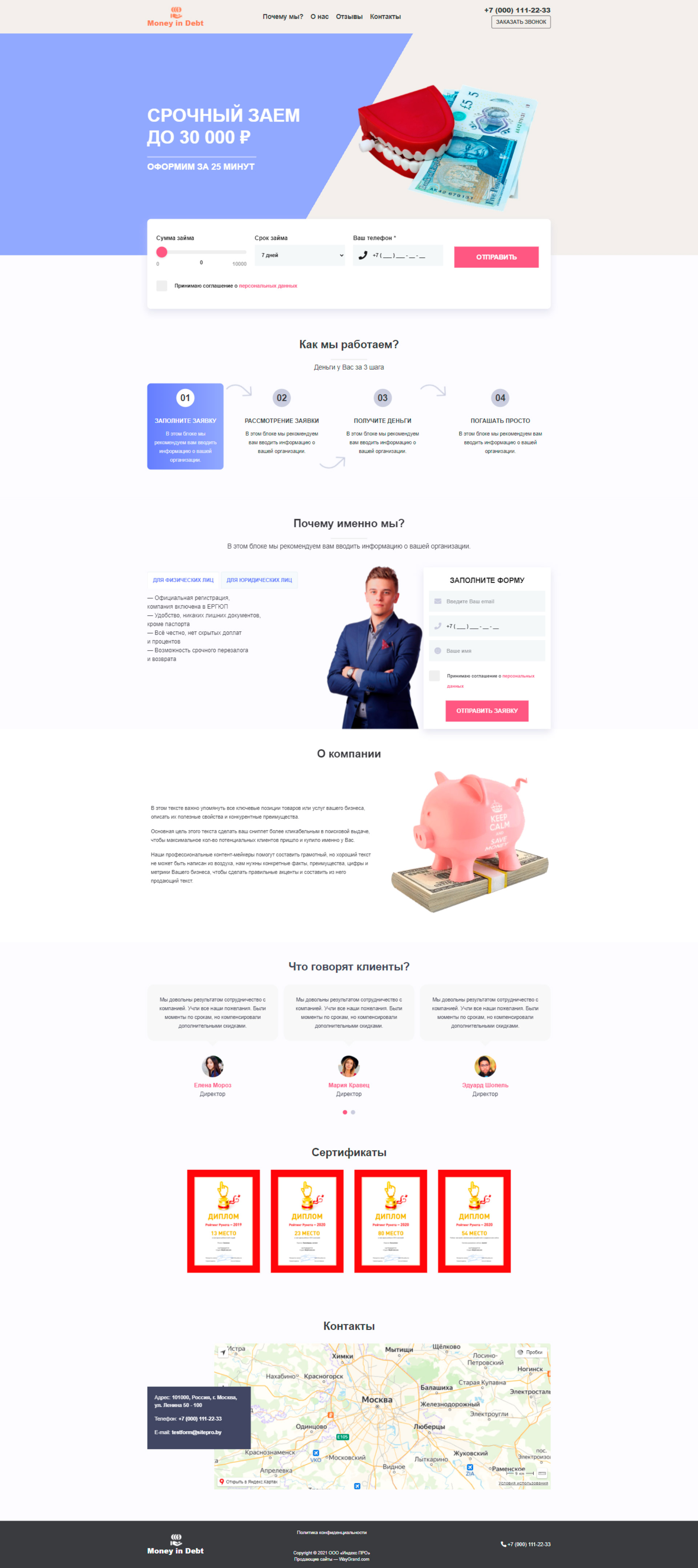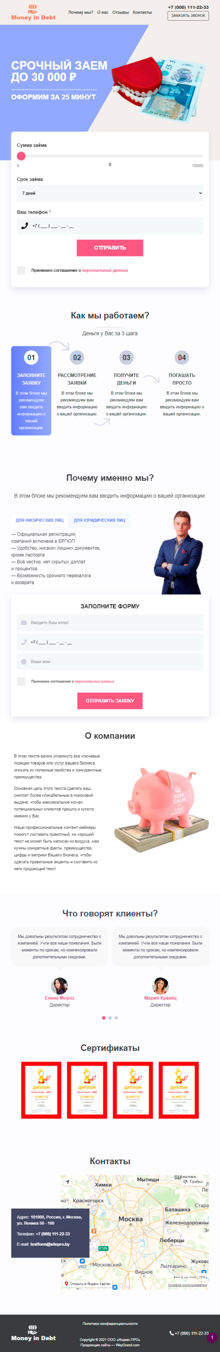 Закажите готовый продающий сайт лендинг #2825202 в Грозном за 1-3 дня «под ключ»: свёрстан, отрисован и готов к рекламе. Тематика шаблона «Деньги в долг».