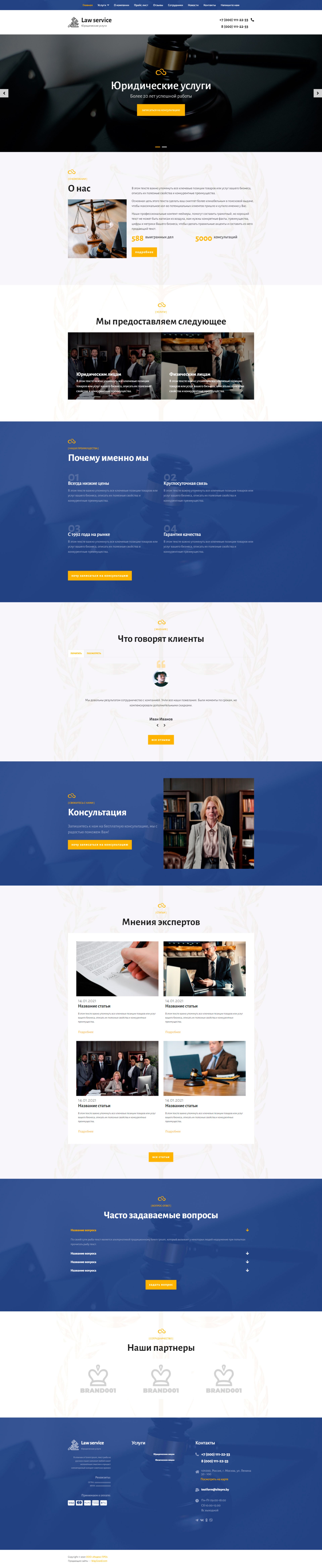 - Промогалерея "Юридические услуги" с кнопкой призыва к действию "Записаться на консультацию"