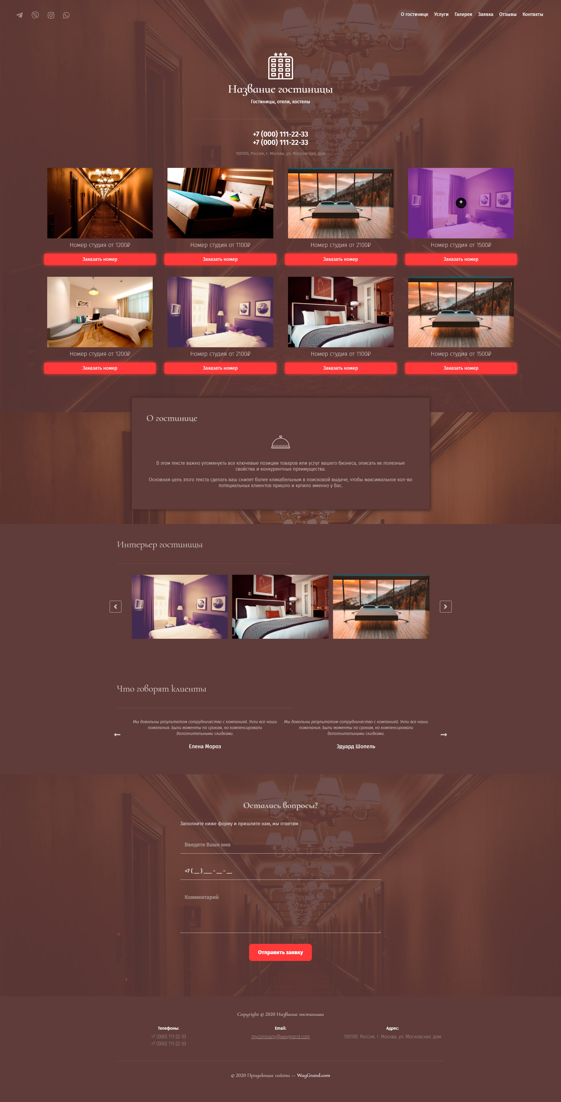 Закажите готовый продающий сайт лендинг #1905202 в Грозном за 1-3 дня «под ключ»: свёрстан, отрисован и готов к рекламе. Тематика шаблона «Гостиница, повышенный комфорт».