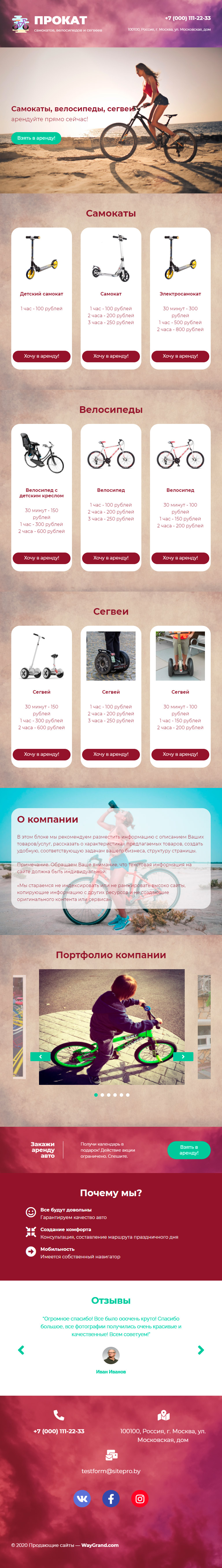 Закажите готовый продающий сайт лендинг #1907201 в Грозном за 1-3 дня «под ключ»: свёрстан, отрисован и готов к рекламе. Тематика шаблона «Прокат самокатов и велосипедов».