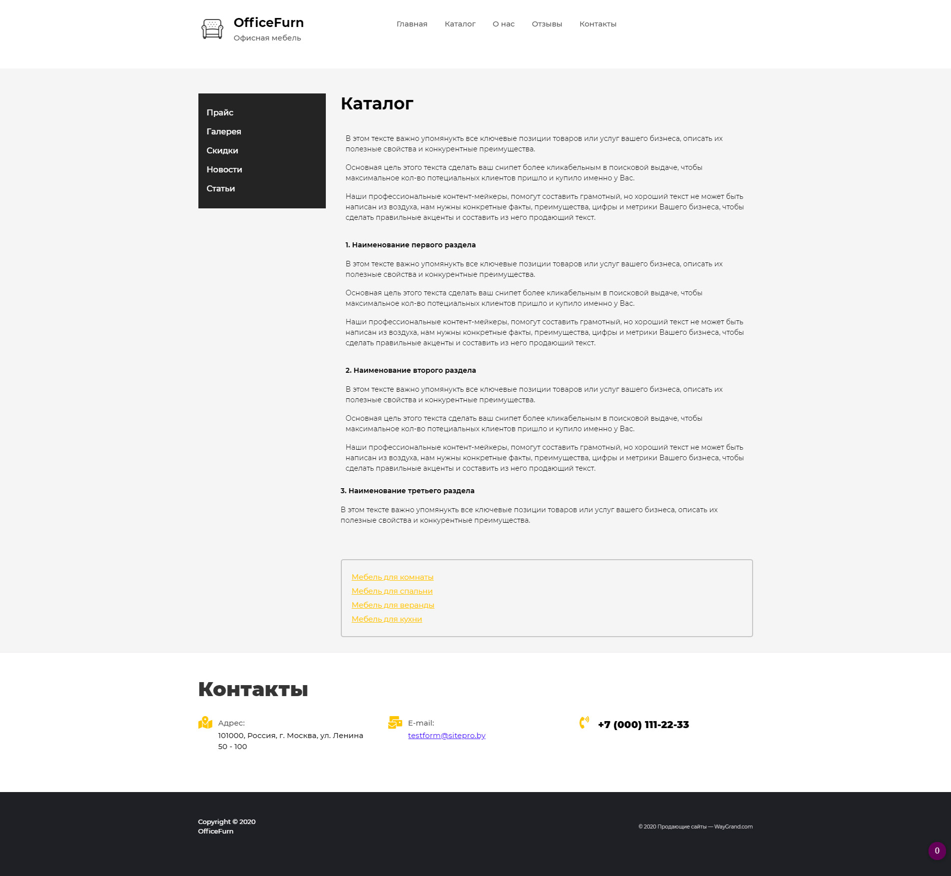 Закажите готовый продающий сайт визитка #0921301 в Грозном за 5-7 дня «под ключ»: свёрстан, отрисован и готов к рекламе. Тематика шаблона «Офисная мебель».