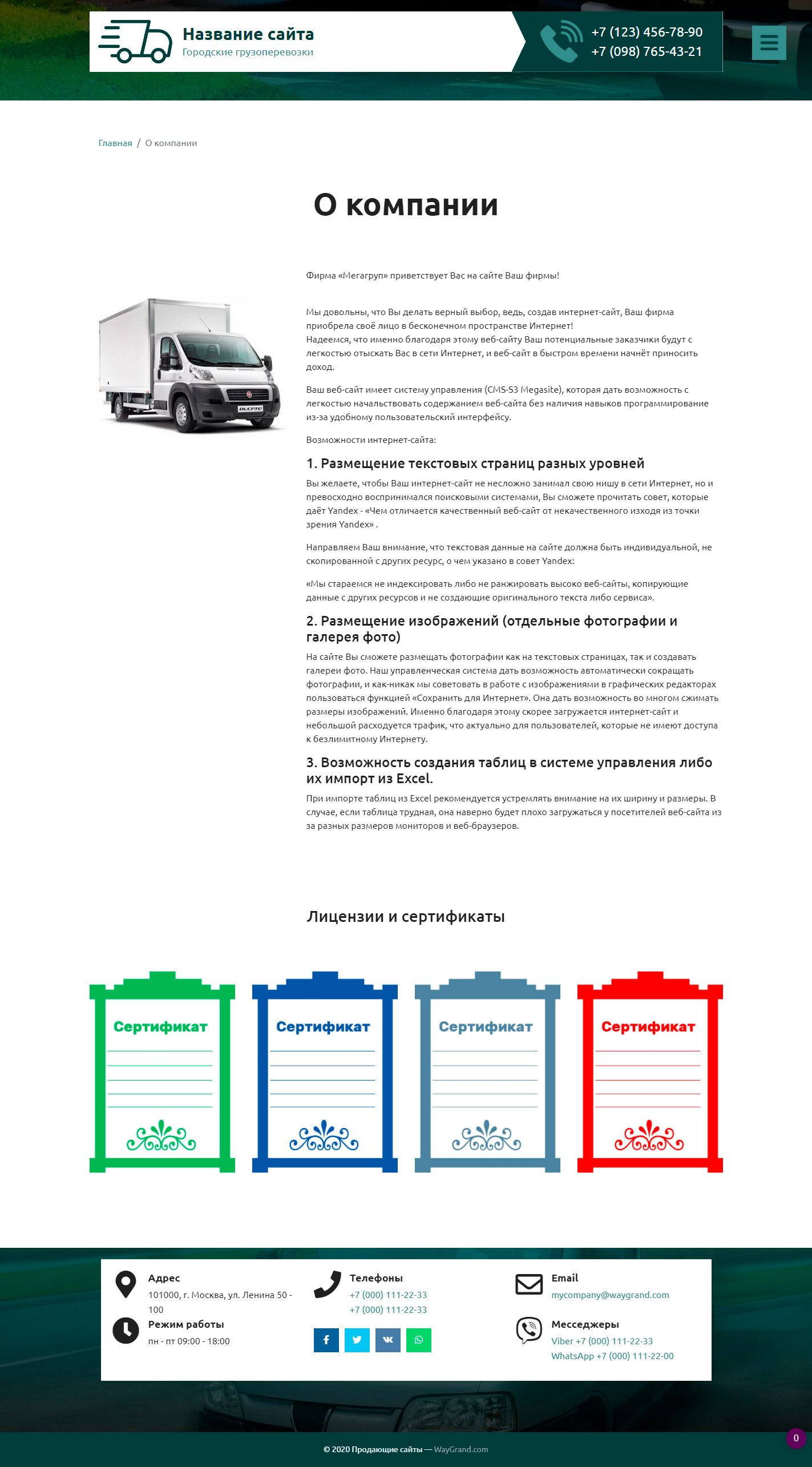 Закажите готовый продающий сайт визитка #2515302 в Грозном за 5-7 дня «под ключ» по доступным ценам на WayGrand: свёрстан, отрисован и готов к рекламе. Тематика шаблона «Городские грузоперевозки».