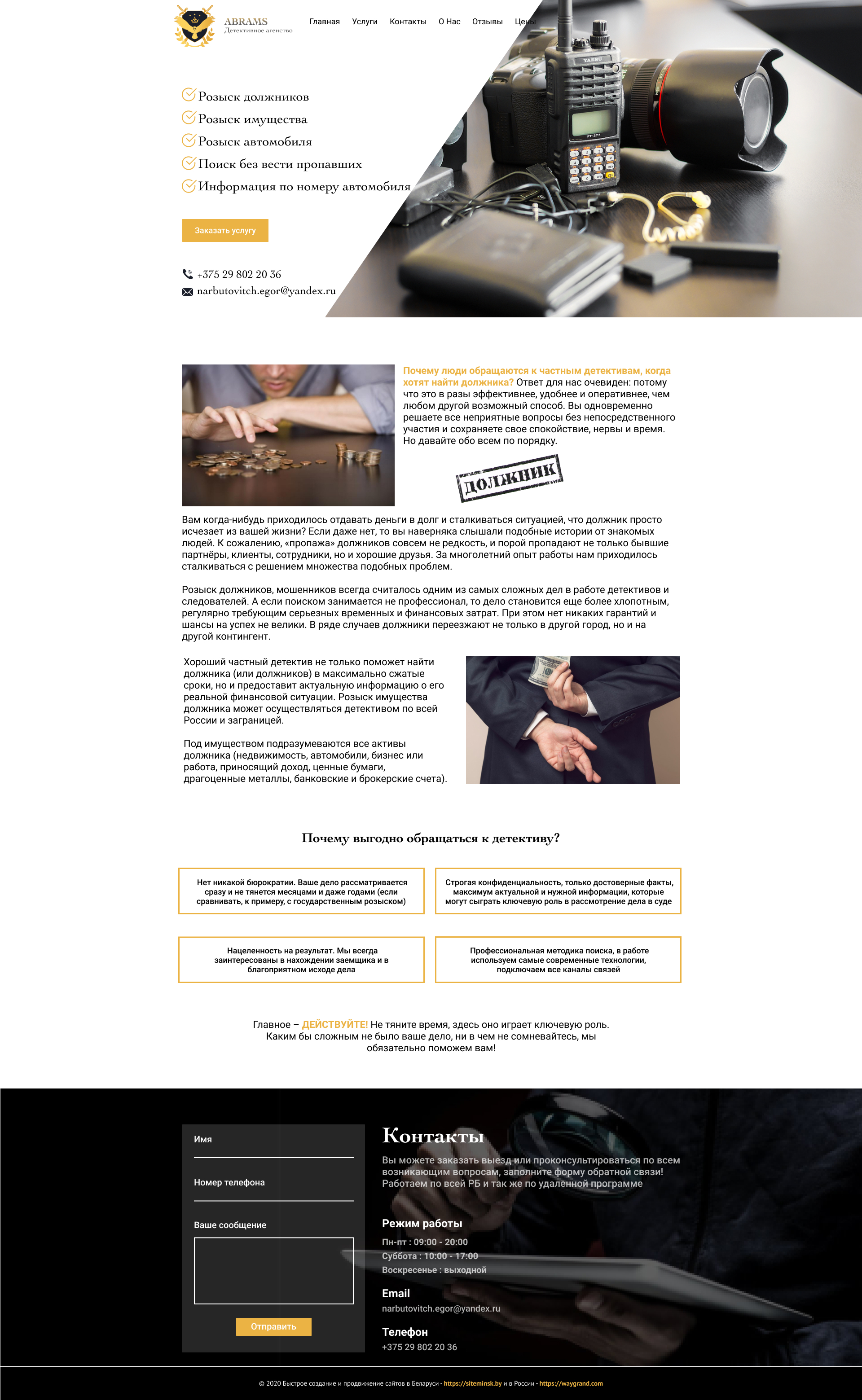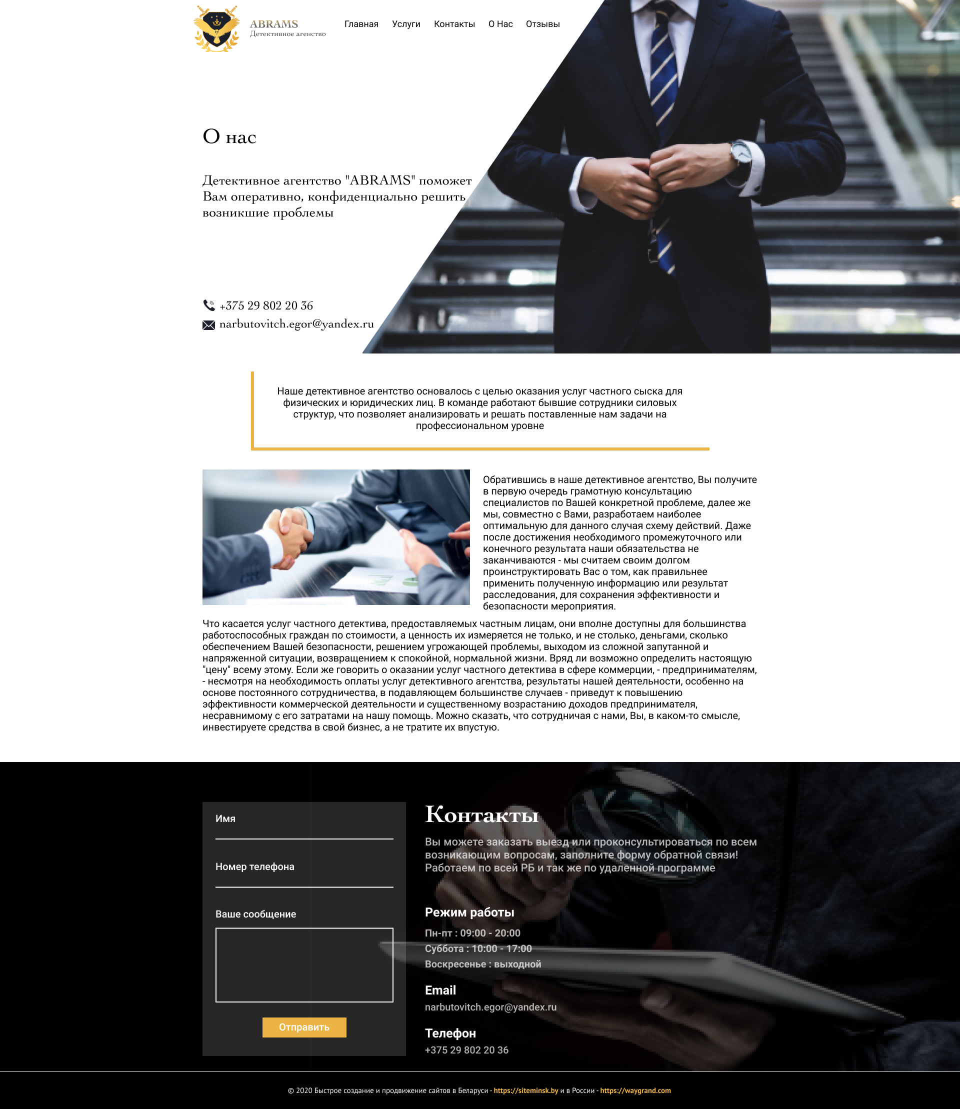 Закажите готовый продающий сайт визитка #239 в Грозном за 5-7 дня «под ключ»: свёрстан, отрисован и готов к рекламе. Тематика шаблона «Частное детективное агентство».